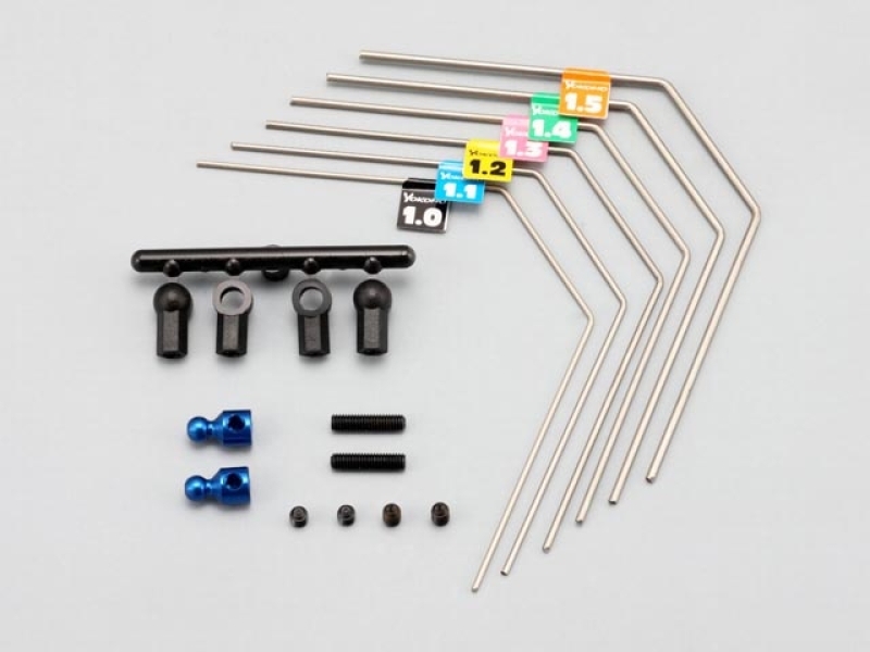 ドリフトパッケージのType-Cシャーシに適合するリアスタビライザーのセットです。スタビワイヤーの線径は1.0mmから1.5mmまで、0.1mm刻みで6種類付属し、きめ細かいセットアップが可能です。