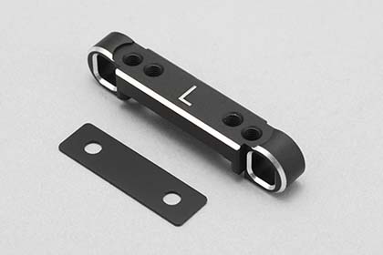 4WDオフロードカーYZ-4用のオプションパーツ、L5アーム用のアルミ製サスマウントです。リヤサスマウントの後側、標準のサスマウントよりもサスピン間が2mm狭く、リヤサスマウント(前側/Z4-300LRF)とセットで使用し、1㎜ロングのL5サスアーム(Z4-008RS5)を組み合わせることで、全幅を変えることなくロングサスアーム化。主にカーペットや人工芝などのハイグリップ路面でサスペンションを硬めに設定した場合でも、適度なシャーシロールを誘発し、操作感を損ねることなく旋回性を引き出すことが可能です。