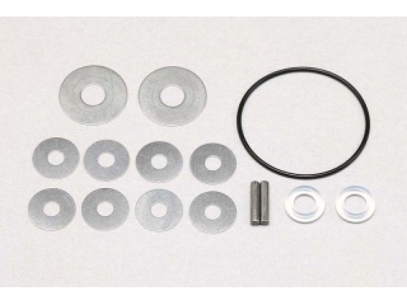 BD10に標準で搭載されているギヤデフ用のメンテナンスキットです。ベベルギヤ用のシム8枚、リングギヤ用のシム2枚、Oリング2個、アクスルピン2本、ケース用Oリング1個がセットになっています。
