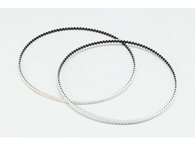 ドライブベルトです。標準のベルトよりも柔らかい素材でできており、駆動効率を高めることが可能です。主にモーターターン数の多いストックカテゴリーに有効で、失速感の低減やトップスピードの向上などに効果があります。前後共通、2本入り。