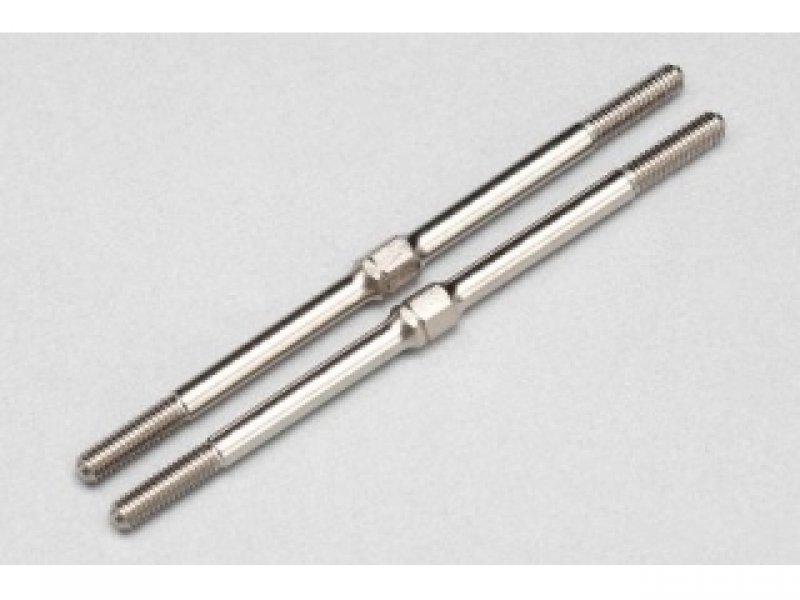アッパーアームやタイロッドなどに使用する65mmのターンバックルです。ニッケルメッキ仕上げのハードスチール製で2本入り。