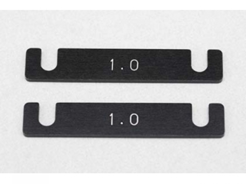 YD-2シリーズ用のサスマウントスペーサーです。サスマウントの下に挟んで高さを変更、ロールポイントを調整することでトラクションを高めることなどが可能です。厚さは1.0mmで2個入り。