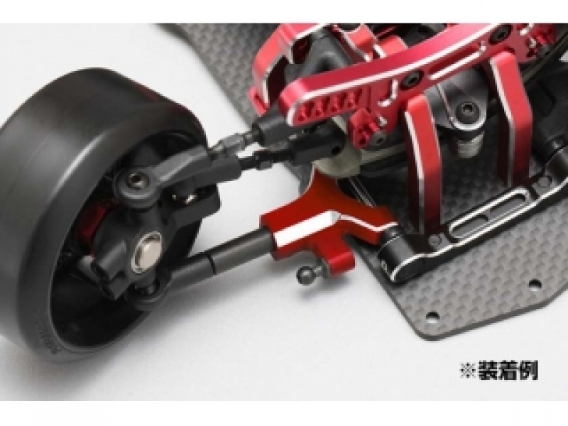 樹脂製のショートアームよりもさらにアーム長を短くし、ホイールとの干渉を無くすことでさらに切れ角がアップし、より深いドリフトアングルでの走行が可能になります。また、重量の増加によるフロントの接地感の向上、剛性アップによるステアリングレスポンスの向上などにも効果があります。