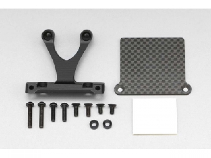 アルミ製のステーにカーボンのマウントプレートを使用するハイブリッド構造で、マシンをメンテナンスするときはマウントプレートごとESCを取り外せますので、手早いメンテナンスが可能。アルミステーはダンパーステーの2点固定、もしくはリヤバンパーと繋げる4点固定が選べますので、フォワードグリップにかかわるリヤ周りの剛性も調整可能です。YD-2シリーズ全車に取り付け可能。