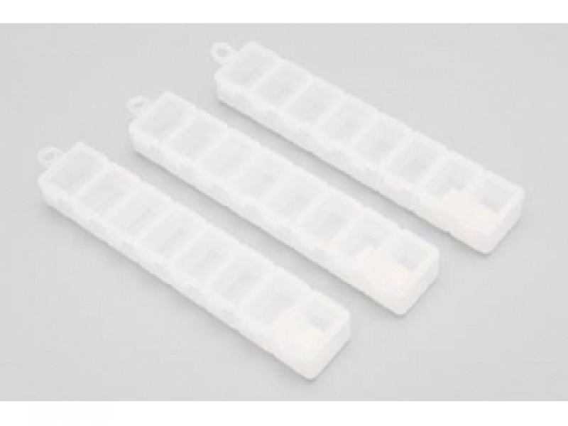 細かいネジなどを収納するのに便利な、8連タイプの縦長パーツケース3個セットです。ケース底がややラウンド形状になっているので、細かいパーツも取り出しやすくなっています。シャーシに使われているネジをサイズ別に収納しておけば、メンテナンスの効率が上がります。