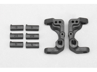 YZ-2DTM3.1/CAL3.1用のステアリングハブキャリアです。グラファイト混入樹脂を使用することで剛性を高め、ステアリングレスポンスを向上させます。サスピン径はΦ3mmで、ブッシュの差し替えによりサスアーム先端の高さを変更することが可能です。