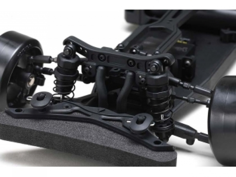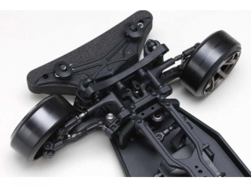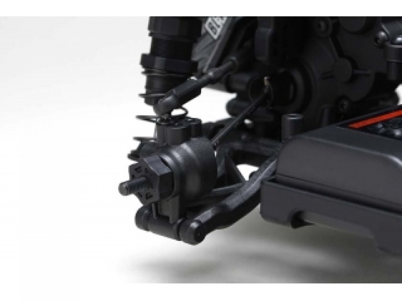また、ステアリングストッパーの位置も見直されていて、切れ角アップに一役買っています。タイロッドのパーツもL字タイプとなり、すべてが深いドリフトアングル実現のために組み合わされています。