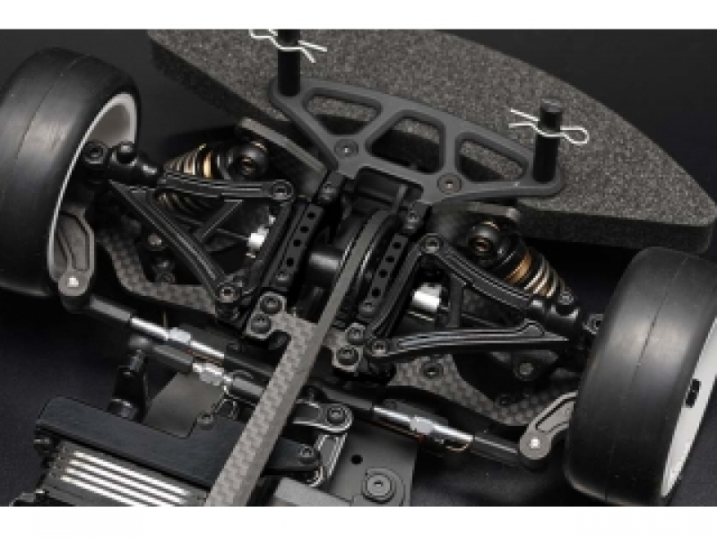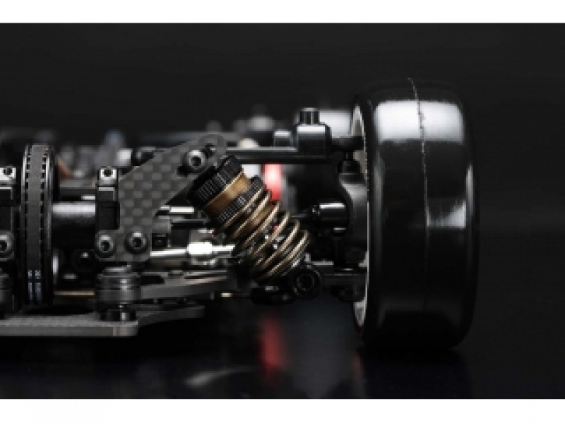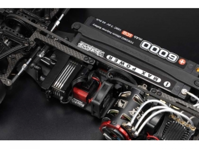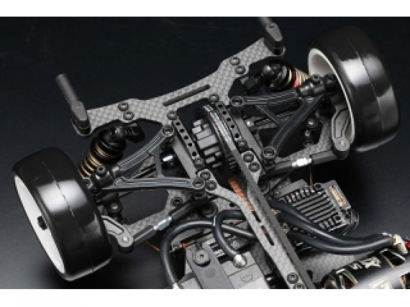 その他にもグラファイト製軽量ロアアームやスリムなアッパーデッキ、ヨコモ製新型ショック&スプリングなどで、路面に吸い付くようなフレックス設定。グラファイト製のメインシャーシ仕様で様々な路面に適合可能です。