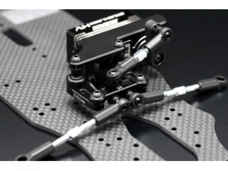 ●ステアリングベルクランクはサーボマウントから吊り下げられる新方式となりました。メインシャーシからポストが無くなることでシャーシ本来のフレックスが生かされるとともに、ベルクランクの動きもメインシャーシのしなりに影響されることなく、スムーズにステアリング作動が可能です。