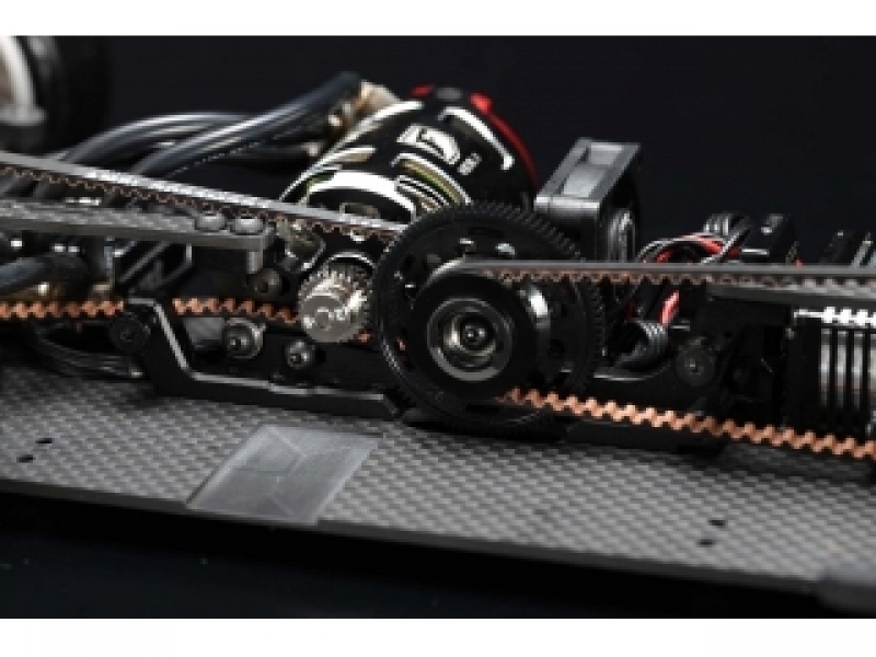●肉抜きを減らしながら、やや細身にデザインされたグラファイト製のメインシャーシ。様々な路面に対応できるのはもちろん、コントロールタイヤのレギュレーションでタイヤに負担がかかることが少なく、レース展開を有利に進めることが可能です。