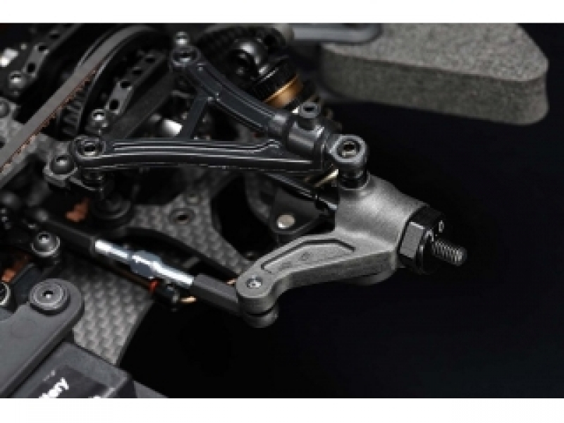 ●上下Aアームを新規採用したサスペンション。ダンパーの取り付けで自由度が高まり、レバー比の変更によりしなやかなサスペンション作動が実現しています。標準のアッパーアームはセッティングしやすい一体型の樹脂製で、自由なアライメント設定ができるターンバックル調整式もオプション設定でご用意いたします。