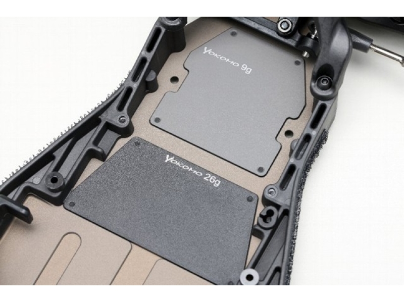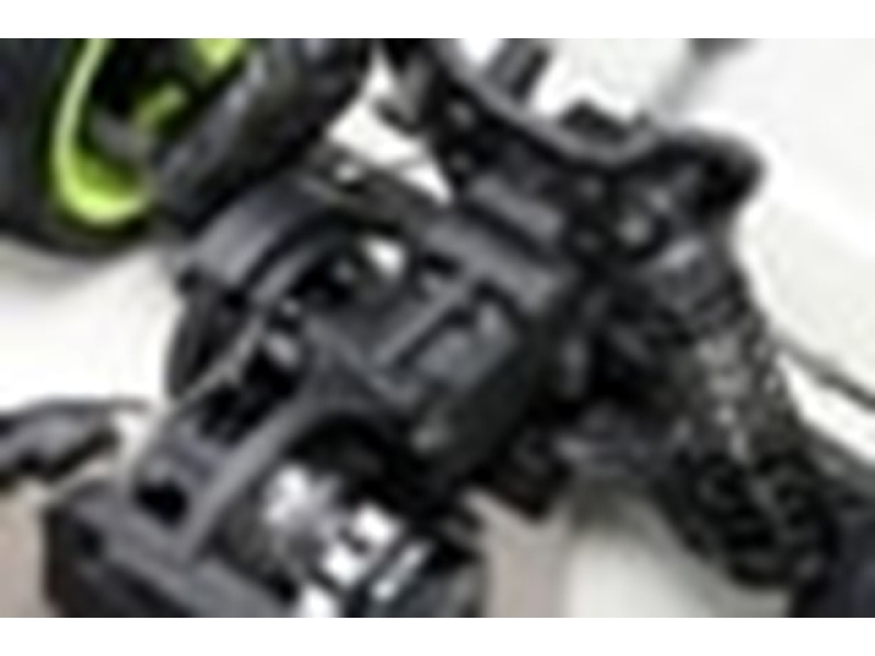 ロング化されたメインシャーシは安定感をもたらしつつ、フロントのウエイトで接地性を高め、コーナーでマシンを前に進めるベクトルを引き出します。さらにモーターマウントの低重心化、前後ショックタワーも空力を考慮した形状に変更し、シャープな走りを確立しています。サスアームや前後ハブキャリア、ギヤボックス、バルクヘッドなども、すべてグラファイト成型パーツを使用し、ドライビングに呼応するレスポンスが魅力です。