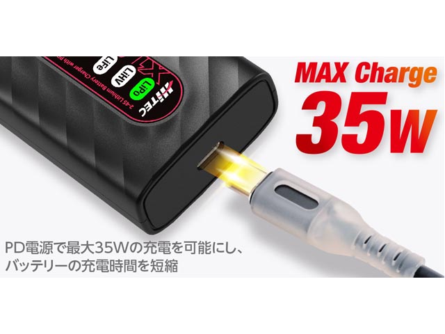 ・バランス充電は、Li-Po/Li-HV/Li-Feバッテリーの2セルから4セルまで対応