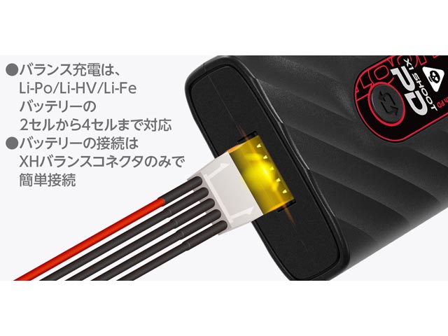 ・バッテリーの接続はXHバランスコネクタのみで簡単接続
