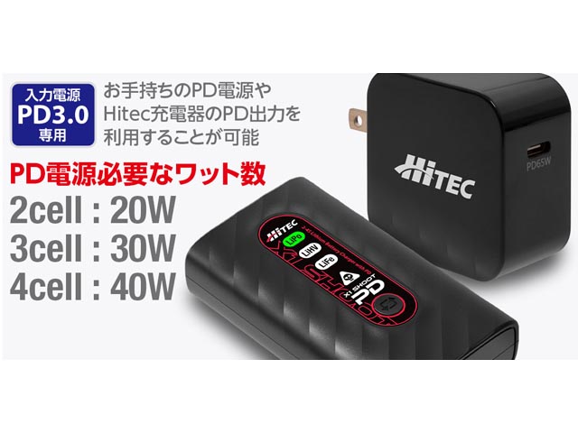 ・お手持ちのPD電源やHitec充電器のPD出力を利用することが可能