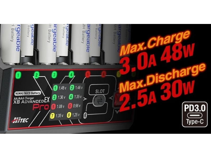【2026年2月中旬入荷予定】44368 AA/AAA(単3/単4 充電器)チャージャーX8アドバンスEXプロ HITEC / ハイテック