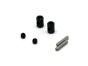ほとんどのタミヤ製ユニバーサルシャフトに使用できるジョイントパーツです。焼入れ処理を施し強度を高めたスチール製。2セット入