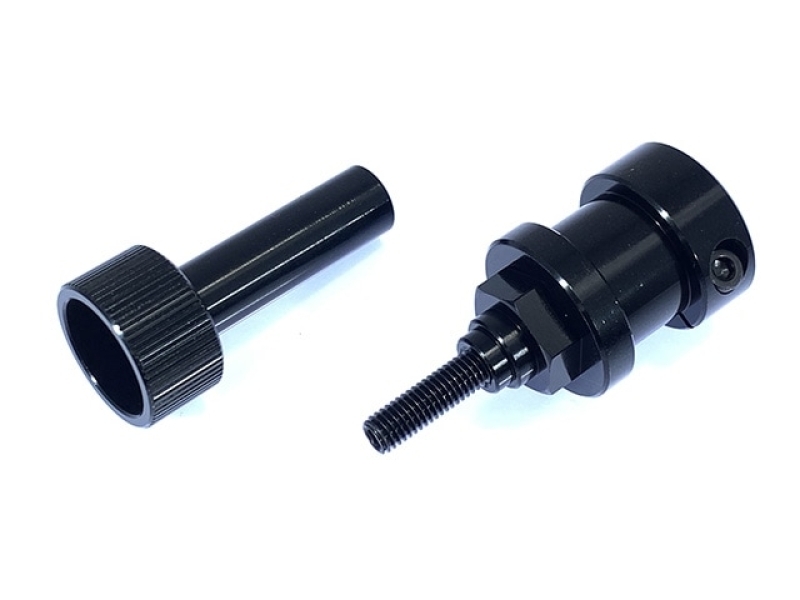 一般的なΦ8シャフトのタイヤセッター用F-1ホイール向けハブです。タミヤF103,104などベアリング径の違うホイールにも両対応します。ブラックアルマイト