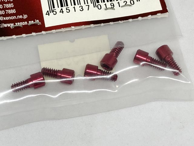 OPT-0080R 1/12用2mmHEX仕様リヤタイヤ取付 7075マシンカットビス(レッド) 6本入