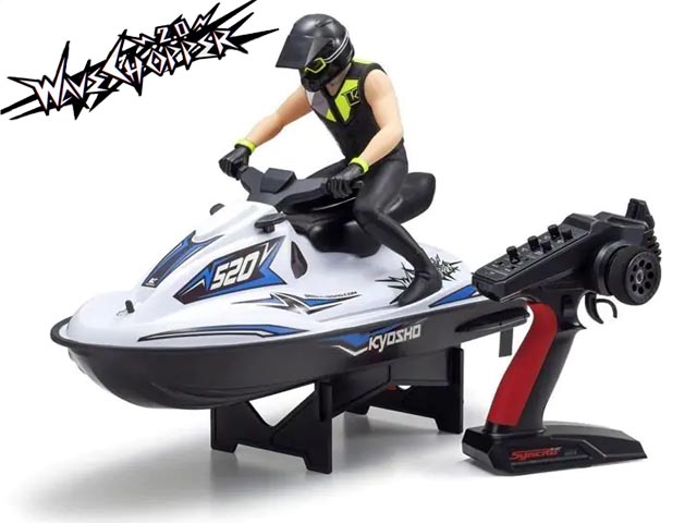 2001年に発売した京商のお家芸ともいえる“RCの楽しさ”を満載したウエーブチョッパーが復刻! ラダー、スタンチューブ、モーターマウントなど船体の根幹をなすパートをブラッシュアップして、『2.0』のネーミングが与えられた1/6スケールの水上バイクにはレーシーな雰囲気が満点のライダーフィギュアが搭乗し、走らせるだけで思わず笑みがこぼれる楽しさをもたらしてくれます。2.0へのバージョンアップにともない、RCメカを最新モデルに一新したことで走航パフォーマンスも大幅にアップ。モーターにはトルク特性に優れる550タイプの『G14L』(ウォータージャケット装備)を、スピードコントローラーにはKYOSHO SPEED HOUSEの大容量60Aタイプ『KA60-91W』を採用して、熱ダレを抑えたパワフルな走りとモーターの特性を活かした鋭い加速性能を高い次元で両立しています。また、船内には発泡スチロール製の不沈フロートが装備されているので、万が一、防水処理をしないまま走航させた場合でも船体が沈まない対策が採られています。このような特徴をもつウエーブチョッパー2.0ですが、船体やライダーフィギュアはすべて工場完成済みなので、短時間で走航準備が完了。ライダーフィギュアを船体に取り付けて、別売の単3乾電池4本を送信機にセットして、付属の専用充電器でニッケル水素バッテリーをチャージすれば、誰でもすぐに走航が楽しめる手軽なパッケージも大きな魅力なだけに、ウエーブチョッパー2.0で非日常のマリンプレイを満喫してみてはいかがでしょうか?