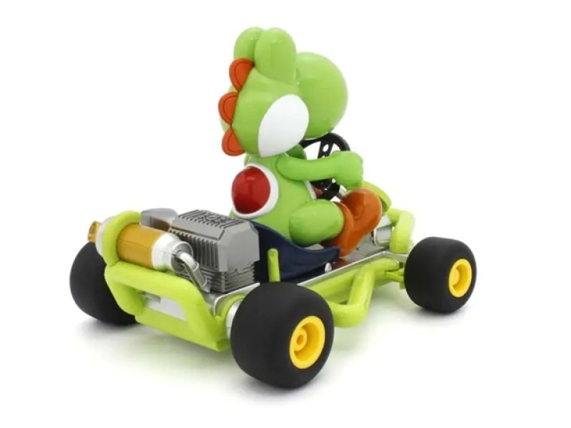 大人気ゲーム「マリオカート」。歴代シリーズには格好良いのから可愛いのまで、素敵なデザインのカートが沢山あります。「レーシングカート RC」は、パイプフレームが目を引く特徴あるカートで、搭乗するヨッシーのフィギュアも可愛らしい仕上がり。RCカーを初めて操作する人でも簡単に走行させることができる前後進・左右旋回の2chモデルながら、ラバータイヤの装着で軽快な走りを体感できます。