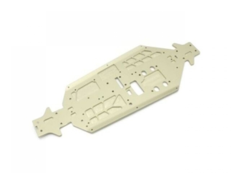 高強度を誇る7075材の3mm厚のメインシャシーは表面硬度や耐摩耗性に優れるハードアルマイト加工を施すとともに、軽量化を徹底追求したMP9 TKI4に比べて肉抜きを減らして強度を確保。
