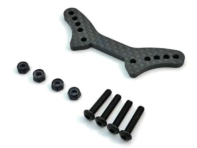 路面からの入力を確実にダンパーに伝える事が出来、さらにダンパーの角度も4段階に調整可能となり、細かなセッティングが可能になる。ダンパーステー、ビス類のセット。