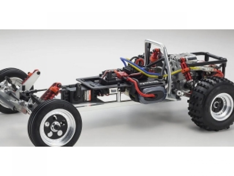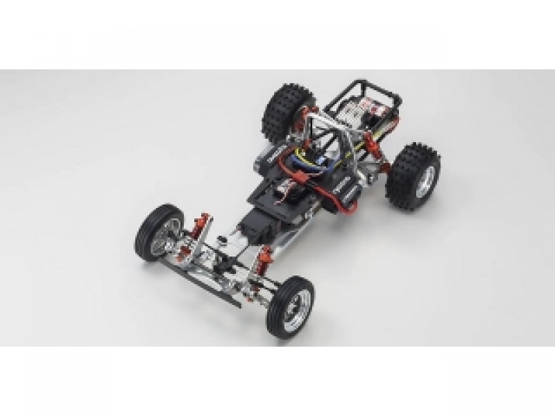 優れた基本コンポーネンツを有するスコーピオンをベースに、よりレースに特化した純競技車両として数々のモディファイを行い、1983年に登場したトマホーク。発売と同時に国内/海外のオフロードレースシーンを席巻、その活躍は今でも多くのR/Cカーフリークの記憶に刻まれていることでしょう。そんな強烈なインパクトを放った不朽の名車が、復刻を望んでやまない数多くの京商ファンのリクエストに応えるカタチで、ビンテージシリーズ第3弾モデルとして復活を果たしました。シャシーは6061T6アルミ製メインフレーム&鍛造サスペンションアームや、ギヤデフ内蔵2ピースアルミダイキャスト製ギヤボックスなど金属パーツを惜しみなく投入したスコーピオン2014を踏襲しながらも、純レーシングバギーとしての地位を不動のものにすることとなったトマホークならではのスパルタンなダブルデッキスタイルを忠実に再現。もちろん、オリジナルモデルをそっくりそのまま再現するのではなく、現代のR/Cサーキットでの走行や最新パワーソースの搭載を視野に入れた各部のブラッシュアップも図っています。ファン待望の復刻モデルの登場なだけに『眺めて楽しむ』という人も決して少なくないかもしれませんが、トマホークはメカボックスを廃したことによる大幅な軽量化に加え、バッテリーの横置き搭載による最適な重量バランスの獲得によって純レーシングバギーならではのシャープな走りを身上とするマシンなだけに『走らせて楽しむ』ことをお勧めします。