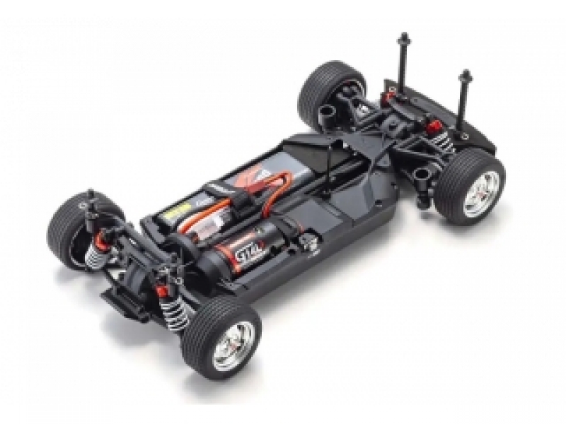 実車のフォルムを実感豊かに再現したボディとの組み合わせで、速い・遅いにとらわれることなく、純粋にR/Cカーの走りを楽しむことを提案するフェーザーMk2シリーズ。パーツ点数を少なくすることでメンテナンス性を高めた軽量シャシーはシンプルなデザインながら、前後のステフナーや各部に設けた補強リブ、そして使用する材質の変更など細部にわたるブラッシュアップで高い強度と走行に適した剛性を確保。加えて、極力シンメトリーとなるようなシャシーデザインとしたことで、前後バランスに優れるサスペンションや車格に見合ったパワーソースとの相乗効果によるクセのない素直な操縦性も獲得しています。そのうえで前後ギヤデフ、オイルダンパー、フルボールベアリングを採用。高い耐久性と耐衝撃性を確保して、ドライバーをしっかりとサポートします。また、標準装備の0mmオフセットのブレーキディスク型ホイールハブ以外に(+5mm)オフセットのホイールハブを同梱して190mm幅と200mm幅の両ボディに対応するとともに、オプションパーツ(別売)としてホイールベースが260mmのショートメインシャシーとショートセンターシャフトを用意。これらのパーツを組み替えることによって、付属ボディ以外の1/10スケールボディが搭載可能となります。しかも、すべてが揃った工場完成のレディセットですので走行用バッテリー、走行用バッテリー用充電器、送信機用電池を別途購入すれば、すぐに走行が楽しめます。