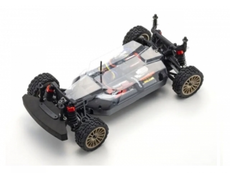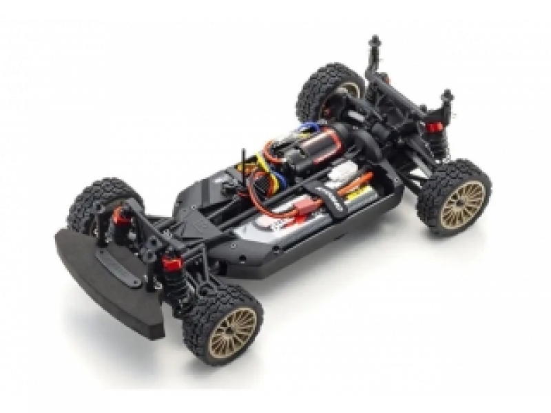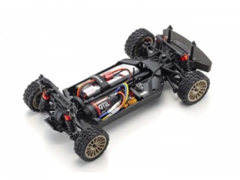 1/10スケールEP(電動)モデルのFAZER Mk2は、ビギナーにも扱いやすいレディセットとして、そして組み立てが容易で走行性能も高いシャシーとして人気を集めています。そんなFAZER Mk2のラインアップにラリーバージョン“FZ02-R”が加わりました。オン&オフロード走行もこなすラリーモデルの要である足回りにはショックケースやピストンを新設計したオイルダンパーを採用し、このダンパーを支える前後ダンパーステーも新規製作しています。これらの装備によって十分なサスペンションストロークが確保され、ギャップの多いダート走行でも卓越した走行安定性を発揮。駆動はトラクション性能に優れたシャフト式4WDで、新型ラリータイヤがモーターのパワーを確実に路面へと伝えます。ジャンプ前後時に受ける衝撃からシャシーのフロント部を保護するスキッド付きフロントバンバーや、埃や砂、小石などからR/Cメカを守るシャシーカバーも標準装備。キットに付属するボディは、世界ラリー選手権で活躍したスバル・インプレッサWRC2002。第1戦ラリーモンテカルロの4連覇の偉業を成し遂げたトミ・マキネンモデルを、京商ならではのウルトラスケールボディで再現しました。実車のデータと資料を元に造形されたボディには、別売りのLEDライトユニットの装着も可能です。ボディはスバルのトレードカラーであるブルーに6連星グラフィックで仕上げられ、ゴールドの15本スポークホイールが足下を引き締めます。スバルWRCの黄金時代を飾ったモデルの豪快な走りを、手軽な組み立て完成済みレディセットで心ゆくまで楽しめます。