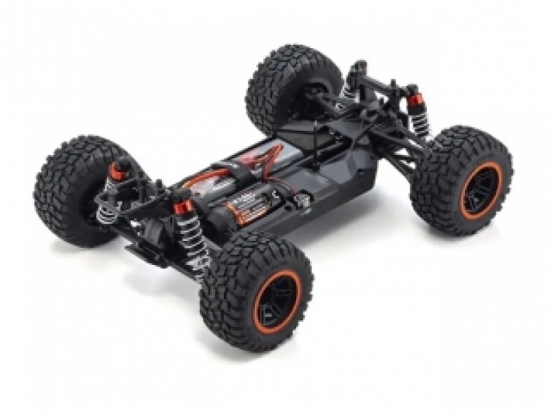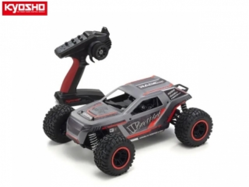 レーシングSUVトラックという新たなカテゴリーを提案するマシンとして登場した『レイジ』が、第2世代を示す“2.0”のネーミングを与えられて大きく進化! コストパフォーマンスと走破性を兼ね備えた従来モデルのコンセプトは受け継いでいるものの、その走行性能にいっそうの磨きがかかりました。パーツ点数を少なくすることでメンテナンス性を高めた軽量シャシーはシンプルなデザインながら、前後のステフナーや各部に設けた補強リブ、そして使用する材質の変更など細部にわたるブラッシュアップで高い強度と走行に適した剛性を確保。加えて、極力シンメトリーとなるようなシャシーデザインとしたことで、前後バランスに優れるサスペンションやオールマイティな特性をもつタイヤ、車格に見合ったパワーソースとの相乗効果によるクセのない素直な操縦性も獲得しています。そのうえでスリッパークラッチ、前後ギヤデフ、オイルダンパー、フルボールベアリングを採用。ラフな走行にも高い耐久性と耐衝撃性を誇り、ドライバーをしっかりとサポートします。しかも、すべてが揃った工場完成のレディセットですので走行用バッテリー、走行用バッテリー用充電器、送信機用電池を別途購入すれば、すぐに走行が可能。オンロードからオフロードまで走る場所を選ぶことなく、どこででも楽しむことができるレイジ2.0でR/Cカーの魅力や楽しさを体感してみてはいかがでしょうか。