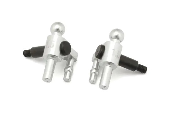 アルミ削り出しのステアリングブロック。標準の0度を基準に0.5度・1.5度・2.5度をラインナップ。MZW702同様にアッパーアーム取り付け位置を変更し、キングピンを傾ける実車と同じ構造を採用。MZW702と合わせて0度から3度まで0.5度刻みで細かいセッティングが可能。