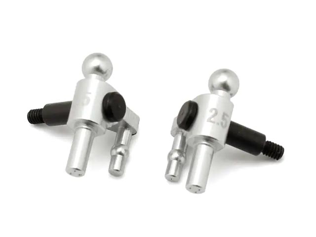 アルミ削り出しのステアリングブロック。標準の0度を基準に0.5度・1.5度・2.5度をラインナップ。MZW702同様にアッパーアーム取り付け位置を変更し、キングピンを傾ける実車と同じ構造を採用。MZW702と合わせて0度から3度まで0.5度刻みで細かいセッティングが可能。