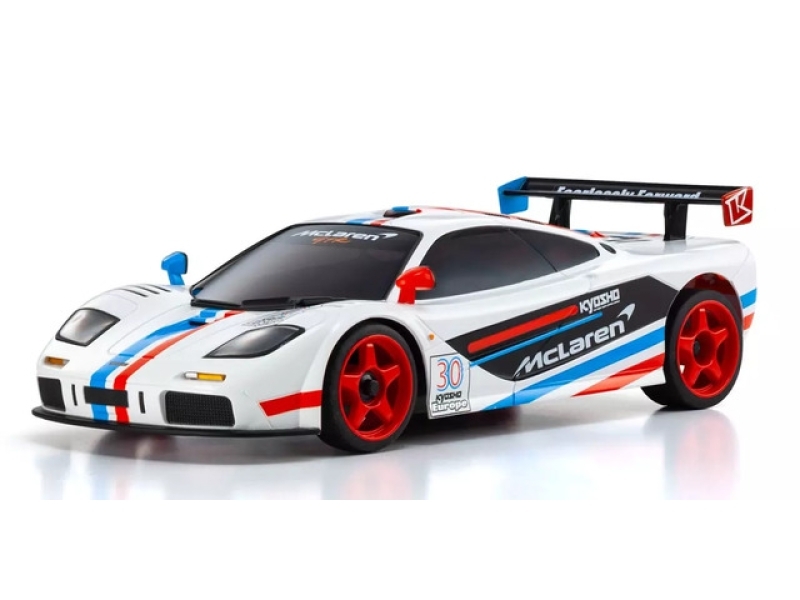 マクラーレンF1のレース仕様として登場した“GTR”。デビューイヤーとなった1995年のル・マン24時間レースでの総合優勝をはじめ、レースシーンで華々しい活躍をみせた1990年代を代表するレーシングカー。京商の代理店FDLの30周年を記念した限定モデル。