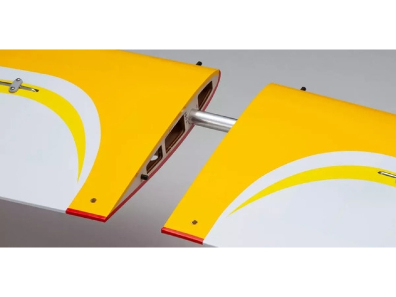 機体サイズが大きくなるほどに得られる、ドッシリとした座りの良さや操舵時の確かな挙動は、実はビギナーにこそ心強い特性です。しかし、その大きさゆえの飛行エリアの制約や、運搬の面倒により、ビギナー向けの製品化は避けられる傾向がありました。「カルマートアルファ60スポーツ」では、ビッグな60クラスならではのゆとりの特性を、低翼入門用に最適化。さらに独創的なセパレート構造の胴体や、脱着式水平尾翼、左右分割主翼等により、手軽に持運べる扱いやすさを実現しました。胴体と主翼はアルミパイプを介して簡単に分解・組立てができるシンプルな構造ながら、高精度に組み上がり、結合後は高い剛性と強度を発揮。ループやロールなどのスタントテクニックのトレーニングにも、確かな信頼性で応えます。そのコンパクトな収納性は、小型乗用車のトランクに、フライト用具一式と共に余裕を持って収納できるほどです。準対称翼型を採用した大面積の主翼は、軽翼面荷重と相まって浮きの良さを発揮。操舵に対するレスポンスも、大型機ならではのリニア感と確実性を兼ね備え、まさに低翼入門にこれ以上ない穏やかな飛びを提供します。しかもパワートレインはオーナーの好みに合わせてGP、EPのどちらもチョイス出来るよう、両方のパーツを付属しました。そして機体は細かなグラフィックまで完成しているフィルム張り済みの工場完成ARFキット。パイロットフィギュアやキャノピーも装着済み。また、モーターマウントとEP仕様用カウリング、エンジンマウントとシリコンチューブ、燃料タンク、タイヤ、リンケージパーツ一式等が付属。接着剤不要で、精度の高い機体を短時間で完成させることが可能です。60クラスならではの特性に扱いやすさを両立させた「カルマートアルファ60スポーツ」で、スケールの大きなフライトをお楽しみください。