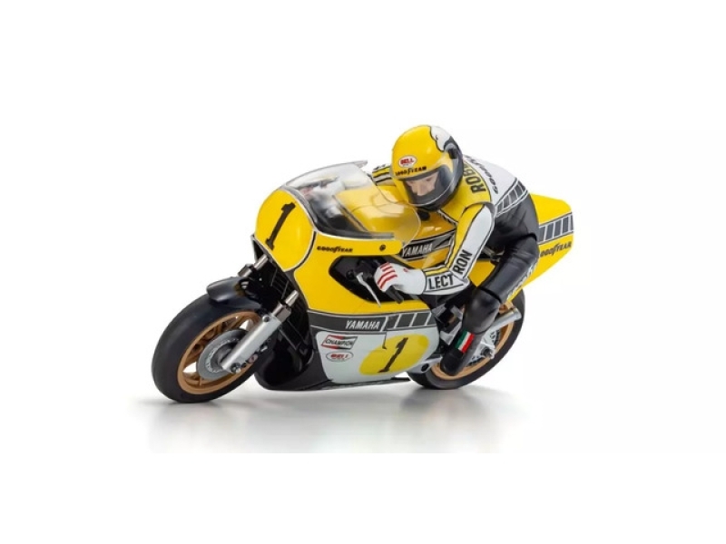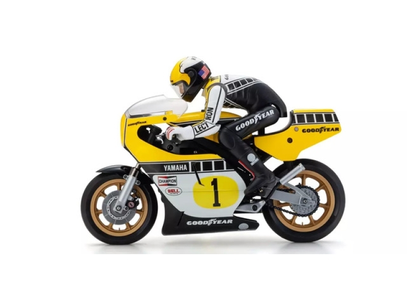 完全自立走行を可能にするS.D.S.S.(セミ・ダイレクト・ステアリング・システム)を採用したことで、従来のR/Cバイクとは一線を画す圧倒的な走行安定性を実現したのが京商製1/8スケール電動R/Cバイクのハングオンレーサーシリーズです。1992年の発売以来、長年にわたって愛されているこのハングオンレーサーに新たな仲間が加わりました! 今回モデル化されたのは、アメリカのケニー・ロバーツ選手が1978年のWGP(ロードレース世界選手権)500ccクラスで自身の初タイトルを獲得したヤマハYZR500です。この年最高峰の500ccクラスにデビューしたロバーツ選手は、出場初年度でチャンピオンに輝くと、以降は1980年まで3連覇を達成して「キングケニー」の称号も得ました。ハングオンレーサーシリーズでは初めてモデル化されるヤマハYZR500ですが、製作にあたって、そのフォルムをはじめ細部まで精密に再現するために現存する1978年型実車の取材を行っています。また、これまでのハングオンレーサーシリーズのフロントサスペンションはシリンダーが上部に位置する倒立タイプのショックアブソーバーを採用していましたが、YZR500では実車と同様の正立型に変更し、リアルさを高めるとともに操縦性を向上させています。車体は完成度の高さに定評があるもので、ステアリングとライダー人形が連動するシステムにより、スケール感の高いコーナリング姿勢と操縦性を両立しました。鮮烈なデビューを飾った1978年仕様のYZR500とケニー・ロバーツ選手を再現したハングオンレーサー YAHAMA YZR500 1978は、往年のファンだけでなく、R/Cバイクを愛する人すべてが楽しめる魅力的なキットです。