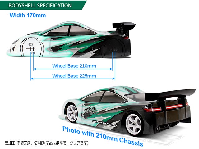 Mシャーシ対応ボディ BLITZ MINI TCN Mサイズボディ タミヤMシャーシ(ホイールベース225mm)に対応するMサイズボディ。