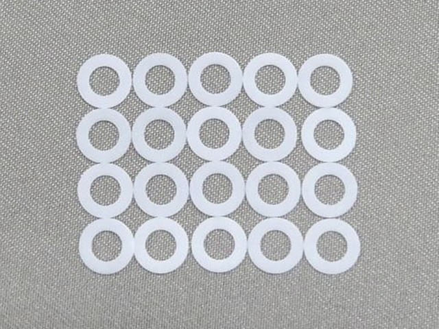 外径約6.0ミリ、内径約3.3ミリのテフロン素材で製作されています。厚さ0.2ミリです。20枚入っています。