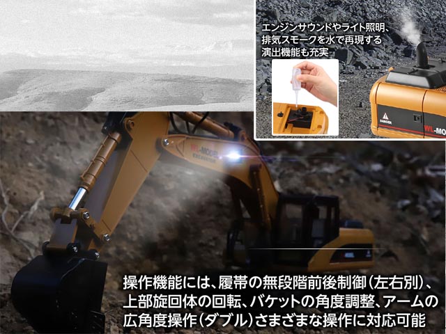●エンジンサウンドやライト照明、排気スモークを水で再現する演出機能も充実