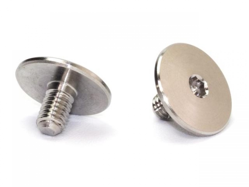 軽量・高剛性な64チタン材から高精度に削り出した、リアウイングマウント用スクリュー。外径10mm、厚さ1.2mmの低頭ボタンタイプのスクリューヘッドにより、ウイングをしっかり取り付けることが可能です。