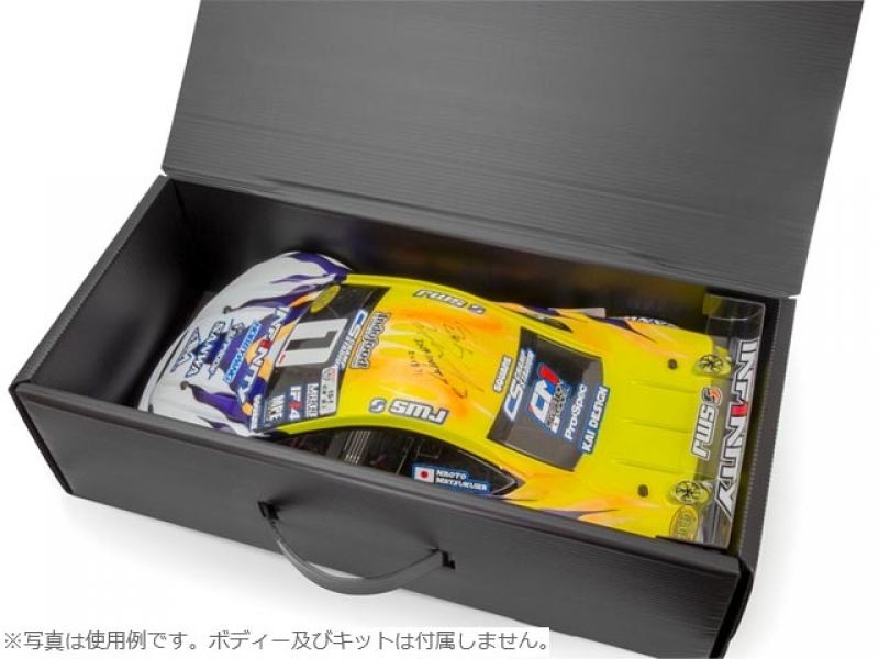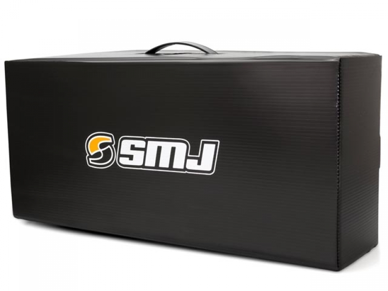 一般的なダンボールよりも、耐久性、耐水性に優れるプラダン製カーゴボックス。上面にSMJ ロゴをあしらったシックなデザインです。1/10 スケールツーリングカーがぴったり収まるサイズです。サイズ:47×21.5x13cm (梱包サイズ:47x47x2.5cm)