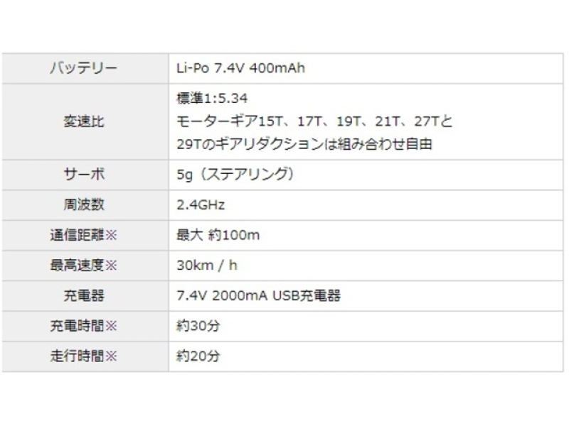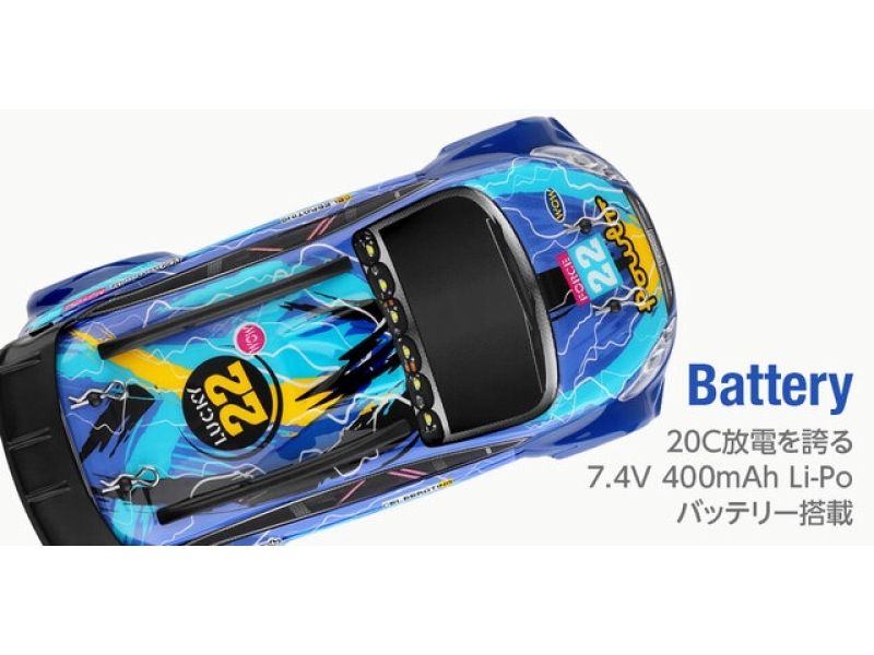 20C放電を誇る7.4V 400mAh Li-Poバッテリー搭載