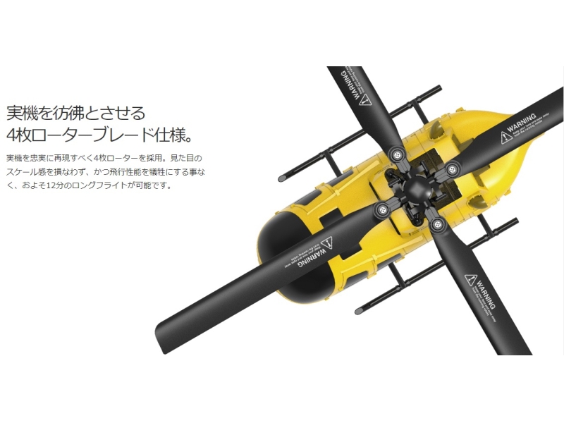 ・実機を彷彿させる高効率4枚ローターブレードで約12分のフライトが可能