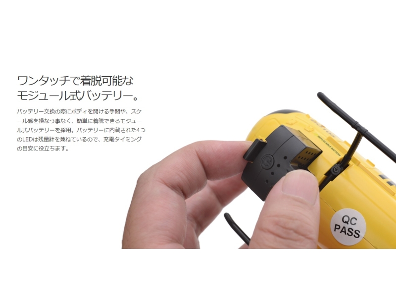 ・ボディを外さず、ワンタッチで着脱可能なモジュール式バッテリーを採用
