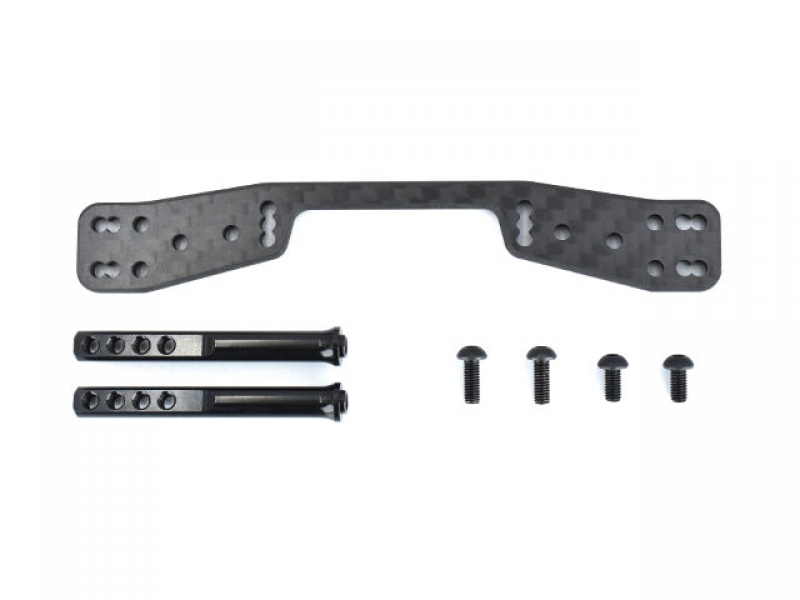 MC-1用パーツとして販売している【M1-016C カーボン製 リアボディマウントプレート】と、【M1-016P アルミ製 リアボディマウントポスト】に取付用スクリューをセットにした商品となります。