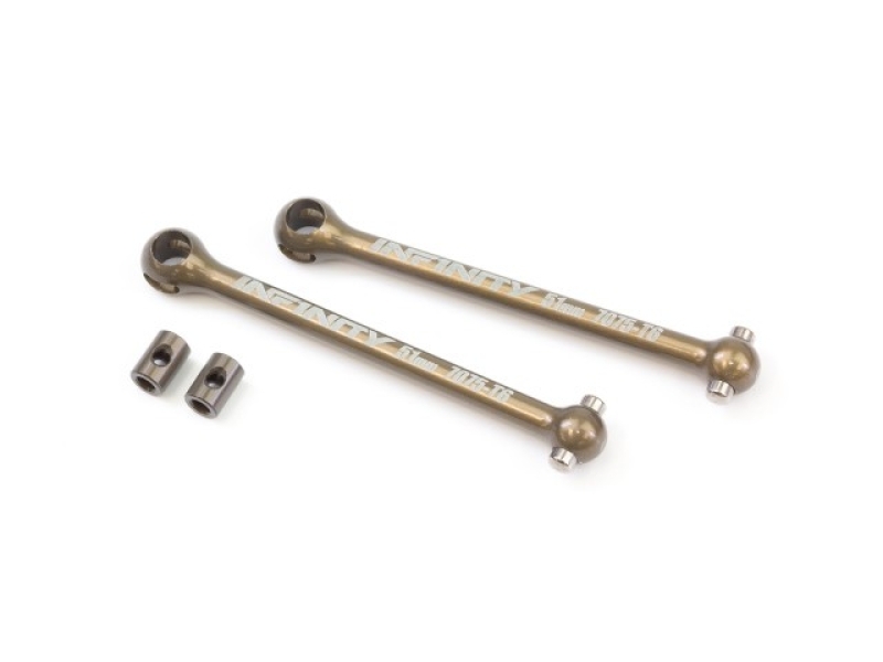 7075-T6削り出し+ INFINITYオリジナルハードコート処理で、軽量・高剛性・高耐久を実現。 鋭いスロットルレスポンスと自在なコーナリングラインで走りにワンランク上のキレを! ドライブシャフトと同処理を施したジョイントパーツも付属。