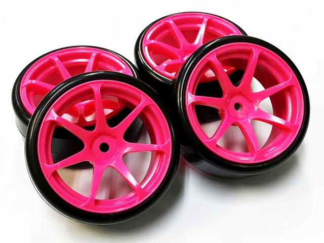 HD-031PK ホイールはめ込み済みドリフトタイヤ(T7ホイール オフセット1 ピンク)