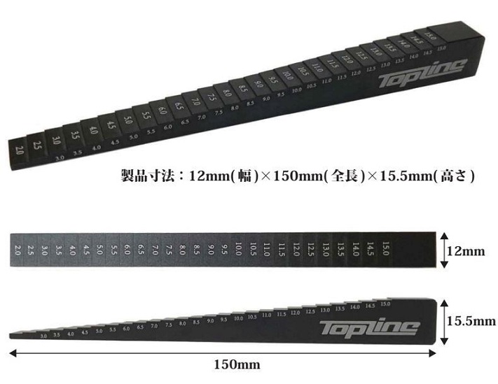 2.0mm ~ 15.0mm までの車高を 0.5mm 刻みで測定可能