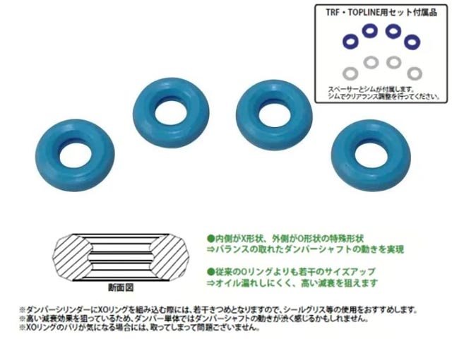 オイル漏れを防ぎ、高い減衰効果を狙った特殊形状のダンパー用XOリングです。
