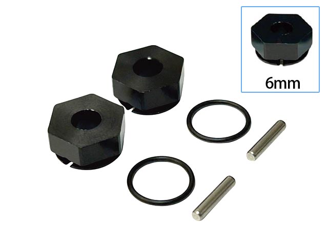 ピンの抜け防止構造を備えたアルミ製六角ハブです。六角ハブをアクスルシャフトに取付後、付属のOリングでピンを止めるだけの簡単構造!!【2個入】 (ご注意)